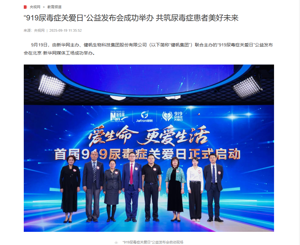 央视网重磅报道!“919尿毒症关爱日”公益发布会成功举办 共筑尿毒症患者美好未来